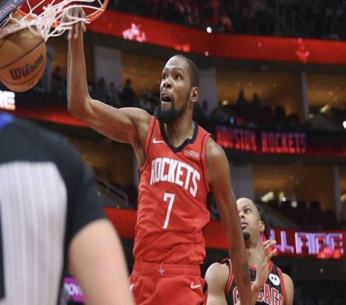 火箭隊凱文·杜蘭特將令凱·亞當斯心碎的驚天扣籃比作“Tush Push”(橄欖球中的“臀部推擊”)凱文·杜蘭特憑...