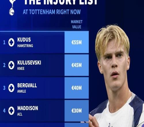 德轉列熱刺傷病名單:8人因傷缺陣,總身價超過2.5億歐元