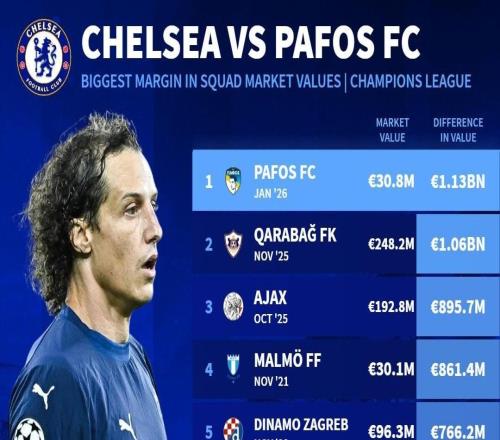 不夠零頭,帕福斯成為切爾西歐冠歷史身價差距最大的對手