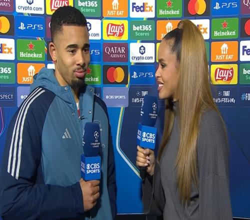 歐冠聯賽階段第7輪,阿森納客場3-1戰勝國米,本場比賽梅開二度的熱蘇斯賽后接受了CBS體育的采訪。恭喜你。演播...