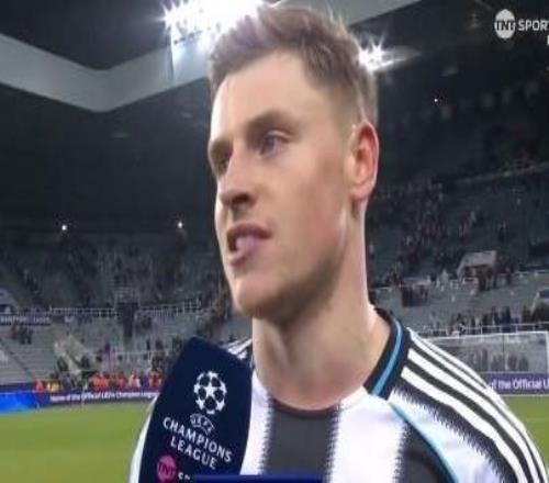 歐冠聯賽階段第7輪,紐卡主場3-0戰勝埃因霍溫,本場比賽打入1粒進球的紐卡前鋒哈維-巴恩斯賽后接受了TNT體育的...