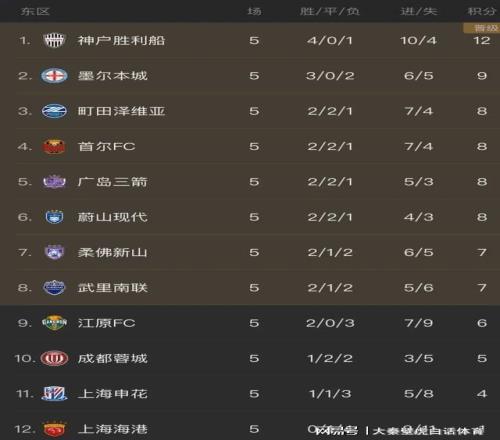 目前的積分榜上,海港5輪僅有1分位居墊底位置。