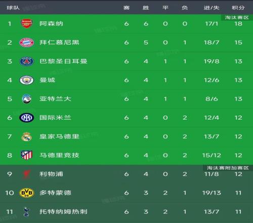 北京時間12月11日,歐冠第6輪結束了所有比賽,我們一起看看最新積分榜變動!