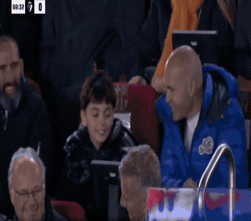 進球后的拉菲尼亞做出標志性的慶祝動作,看臺上的伊涅斯塔也終于露出了笑容。