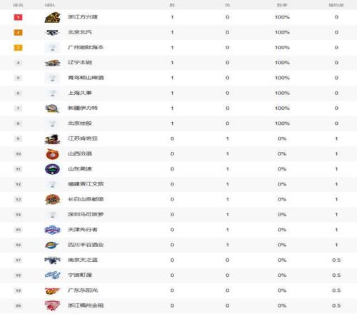 廣廈男籃是率先打響第一輪比賽的,王博的隊伍以88-74擊敗山西男籃,拿到了新賽季的開門紅,從而以得失分率1.189,排在積分榜第一位。