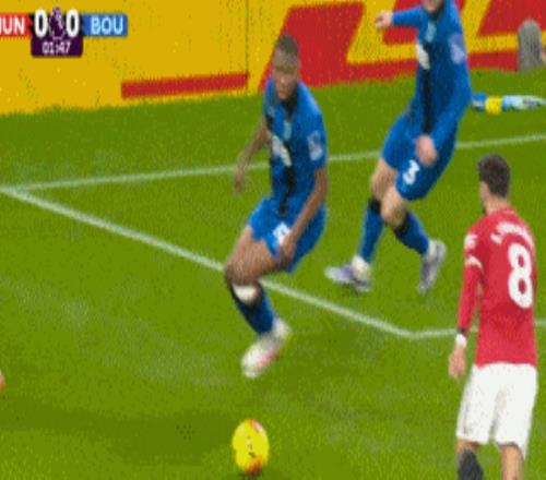 開(kāi)場(chǎng)2分鐘,B費(fèi)的射門(mén)經(jīng)過(guò)反彈擊中伯恩茅斯防守球員的手部,裁判沒(méi)有理會(huì)。
