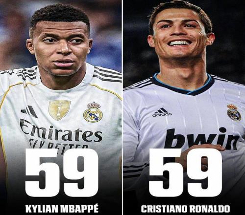 至此,姆巴佩以2025年61場59球,追平了C羅在2013年創下的50場59球皇馬隊史年度俱樂部進球數的紀錄!