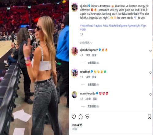 在社交媒體上,她寫道:“公主級待遇 !那場熱火對陣猛龍的比賽氛圍太燃了! 我一直尖叫到嗓子都啞了,但讓我再經歷一次我也愿意。沒有什么能比得上現場觀看 NBA 籃球賽!昨晚還有誰感受到了那種緊張刺激的氣氛?這支球隊需要 11 號贏球!”