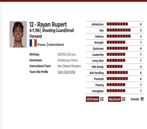 我放上他當初的選秀報告,NBA draft 網站選秀綜合評分91分,預計選秀順位首輪21-22順位(實際次輪總第43順位被選中),在Size尺寸和Defense防守方面評分9分非常出色,在NBA Ready準備方面6分非常不足,選秀模板OG阿奴諾比,網站評語如下:
