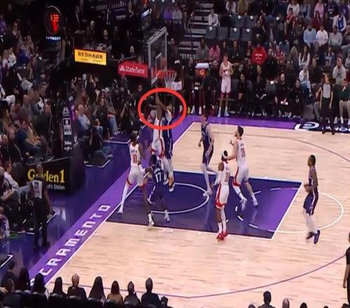 第四次同樣是漏判,發生在距離加時賽結束還有1分13秒。申京在對方禁區內停留時間超過3秒,這是一次漏吹的三秒違例?;鸺@利,國王吃虧。