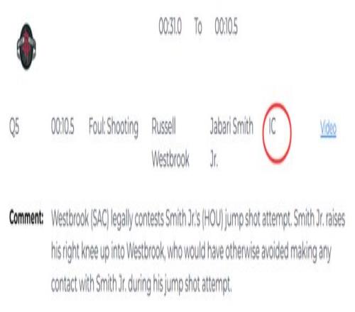 第五次是錯判,發生在距離加時賽結束還有10.5秒。裁判報告指出,威斯布魯克對小史密斯的跳投完成了一次合法干擾。小史密斯在投籃時抬起右膝撞到威斯布魯克,而后者原本完全可以在防守跳投的過程中避免與小史密斯產生任何身體接觸。所以不該吹威少的防守犯規,同樣是火箭獲利,國王吃虧。
