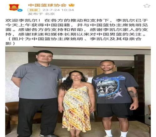 李凱爾經(jīng)紀公司稱“若國家隊需要,李凱爾不排除繼續(xù)效力或加盟CBA”。