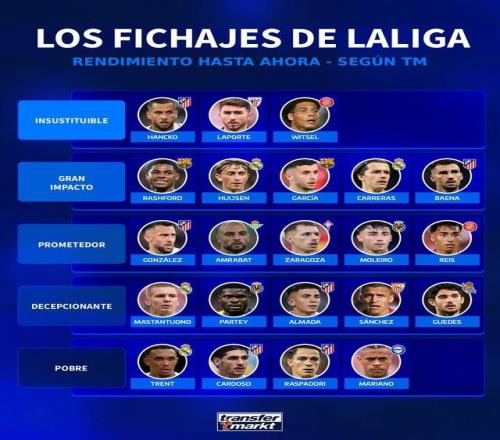 北京時(shí)間12月24日,德轉(zhuǎn)對(duì)西甲今夏的幾筆重要轉(zhuǎn)會(huì)進(jìn)行了評(píng)級(jí),其中漢茨科、拉波爾特以及維特塞爾被評(píng)為無可替代,拉什福德、赫伊森等人被評(píng)為頂級(jí),馬斯坦托諾被評(píng)為令人失望,而亞歷山大-阿諾德則被評(píng)為表現(xiàn)令人失望。