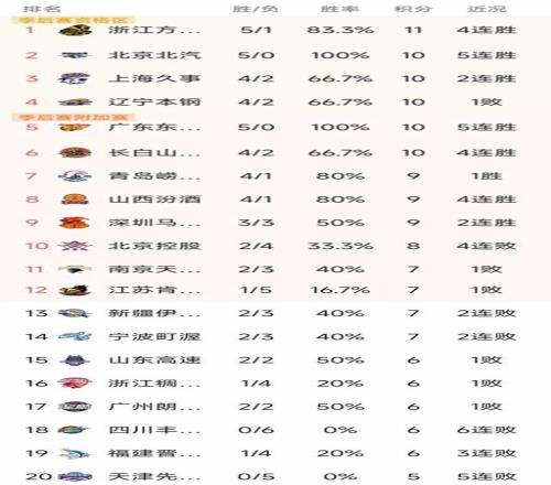 北京時間12月26日,CBA常規(guī)賽第6輪已經結束了4場比賽,最新積分榜如下!