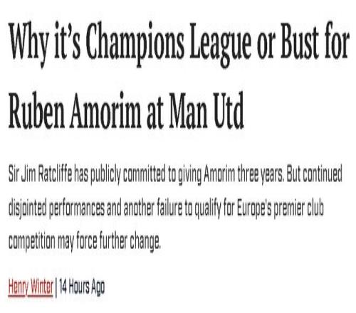 曼聯需要歐戰頂級賽事帶來的經濟效益和聲望,屆時阿莫林將已經執教80場比賽,足以讓他磨合球員,并確立自己的戰術風格。阿莫林至今的60場比賽,只取得23勝21負16平的成績,球隊甚至長時間落后于升班馬桑德蘭。
