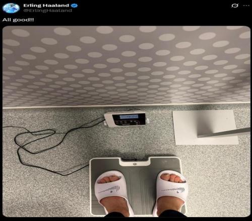 北京時間12月26日,曼城頭號球星哈蘭德更新社交媒體曬出稱重照片,并配以“一切都很好”的文字,幽默回應了主帥瓜迪奧拉放假前對球員體重的嚴格管理要求。