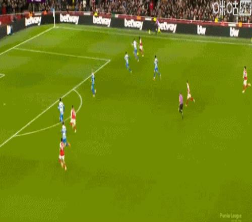 第14分鐘,薩卡助攻,厄德高遠射攻入賽季首球,阿森納1-0領先布萊頓!