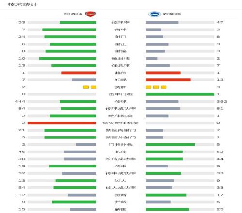 北京時間12月27日,英格蘭足球頂級聯賽第18輪展開較量,阿森納坐鎮主場迎戰布萊頓。上半場薩卡助攻,厄德高遠射攻入賽季首球。下半場賴斯角球造呂特頭球烏龍,之后阿里亞抽射中柱,迭戈-戈麥斯補空門扳回一球,之后明特禁區內兜射,拉亞極限撲救。最終阿森納2-1戰勝布萊頓。