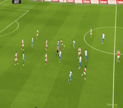 第30分鐘,因卡皮耶送出妙傳,薩卡停球不太舒服,但迅速調(diào)整后依舊強(qiáng)行進(jìn)入禁區(qū)傳球,防守球員將球解圍。