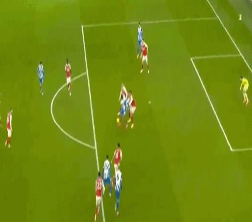 第76分鐘,布萊頓再次踢出默契配合,明特禁區內起腳兜射,直取球門左上角,拉亞回敬極限撲救,飛身單掌托出橫梁,救了阿森納一命。