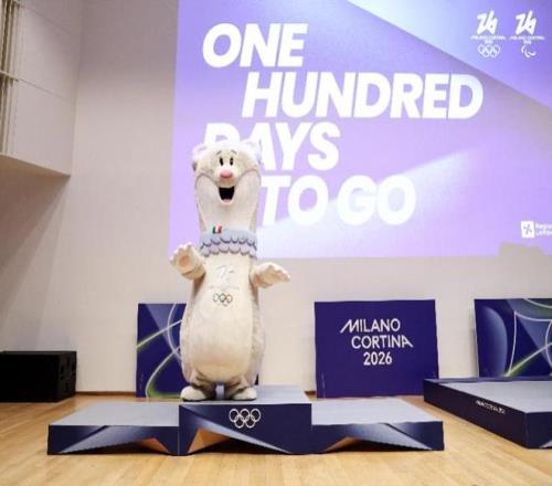 10月29日,米蘭-科爾蒂納冬奧會吉祥物“蒂娜”與冬奧會頒獎臺合影。 當日,距離2026年米蘭-科爾蒂納冬奧會開幕式100天之際,意大利倫巴第大區政府在米蘭舉行慶祝活動。 新華社發