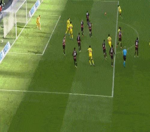 第26分鐘,拉比奧弧線球傳中,恩昆庫中路搶點差之毫厘。