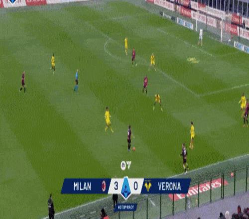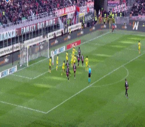 半場補時第11分鐘,米蘭前場右側角球機會,皮球主罰到禁區,拉比奧特頭球擺渡,后門柱位置普利西奇凌空推射破門,AC米蘭1-0領先維羅納。本賽季15次出場,美國隊長打進10球,堪稱球隊進攻大腿。