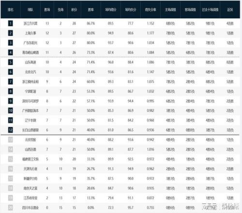 CBA積分榜