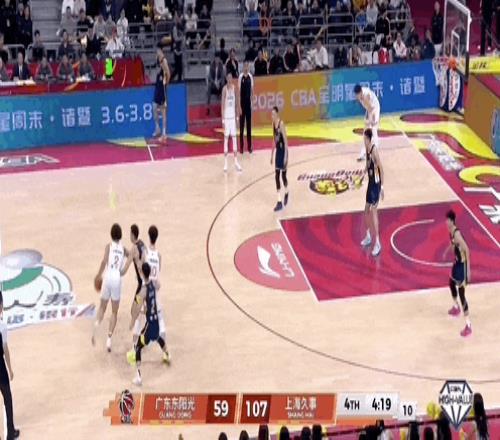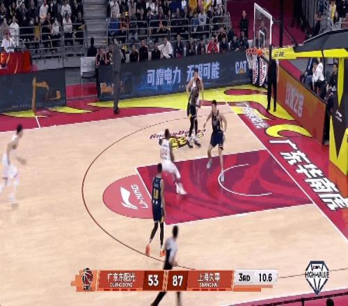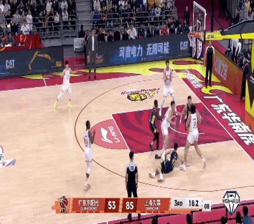 古德溫傳球失誤,直接把球送給了薩林杰,后者交給徐杰,出手三分沒有,薩林杰拿到籃板,在一片混亂中補籃命中。廣東男籃這一波追分,將分差縮小到22分。