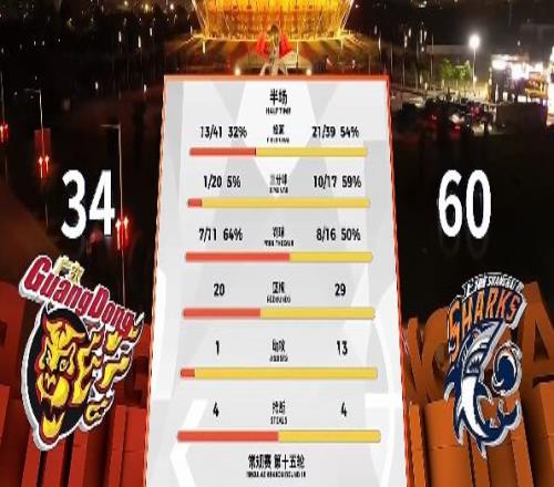 半場比賽結束,上海男籃內外線多點開花,以26分的領先優勢進入更衣室。洛夫頓14分2板1助、張鎮麟13分2板1助、古德溫13分6助、懷特塞德6分14板2帽。