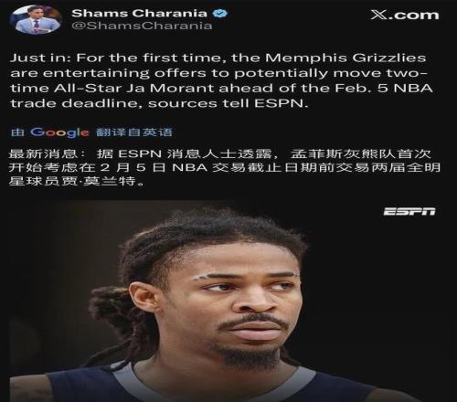 莫蘭特有太多的問題了,已經被灰熊擺上貨架,今年交易截止日(2月6日)前大概率離隊。