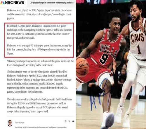 1月16日美國NBC報道,美國聯邦檢察官已經對被控操縱美國大學生籃球聯賽和中國男子職業籃球聯賽的26人提起訴訟。在26人被起訴名單中,包括了前CBA江蘇隊外援、2022-23賽季得分王安東尼奧-布萊克尼。