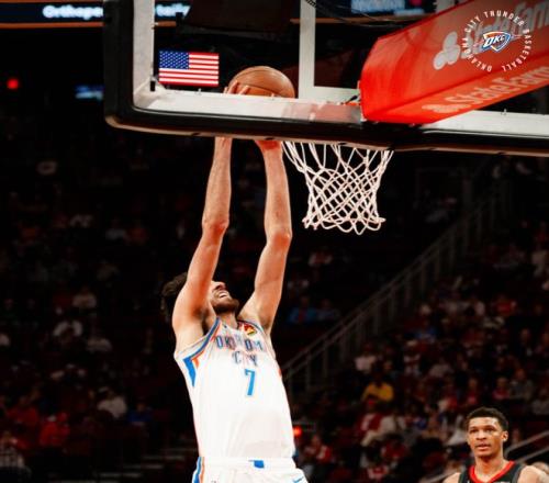 次節霍姆格倫的運動能力體現出來連續的跟進暴扣,雷霆將分差領先到8分,火箭多個前場籃板只可惜就是打不進,亞當斯各種點前場籃板太強勢,憑借海王的前場籃板火箭緊咬比分。亞當斯下了兩分鐘雷霆又拉開9分,火箭再度縮小到4分后SGA命中了壓哨三分,亞歷山大10分,霍姆格倫16分,杜蘭特13中3,申京9中3。
