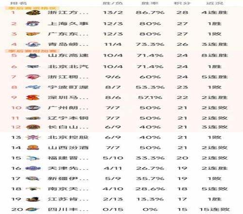 青島和山東兩支山東球隊暫列第4和第5,青島昨天80-67雙殺吉林迎來三連勝,山東109-82戰勝了寧波,外援克里斯、鮑威爾、珀塞爾合砍了72分,幫助球隊收獲8連勝,是目前聯盟最長的連勝。浙江稠州豪取5連勝,以9勝6負積24分暫列第7名。北控昨晚被爆冷以100-105憾負江蘇,里勒空砍了40分,廖三寧和龐崢麟的老表對決15投7中拿到了22分2籃板7助攻,球隊沒有贏球,數據就沒有意義。龐崢麟12投5中拿到了14分3籃板12助攻。