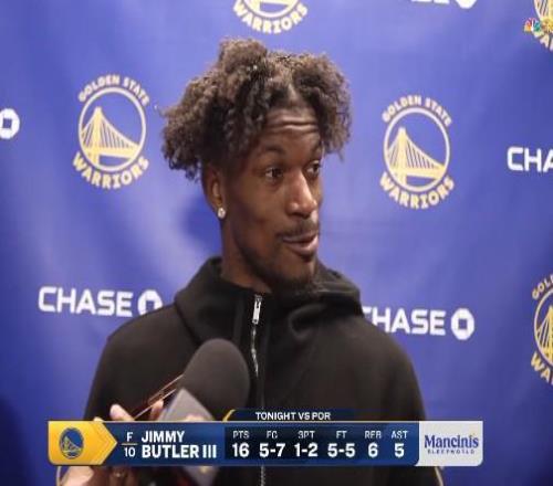 直言不諱,巴特勒:勇士隊非常平庸,這是最糟糕的境地 懂球帝 2026-01-16 13:20:51 北京時間1月14日,在勇士擊敗開拓者賽后,勇士前鋒吉米-巴特勒接受了媒體采訪,他談到了自己對勇士隊目前情況的看法。巴特勒在采訪中直言勇士隊“平庸”,他說道:“我認為最糟糕的境地就是平庸……結果可能好也可能壞,但沒人愿意甘于平庸。”本賽季至今,勇士隊以22勝19負排名西部第八。巴特勒本賽季出場36次,場均出場31.4分鐘,能夠得到19.8分5.6籃板4.9助攻1.4搶斷,投籃命中率51.4%,三分命中率38.3%。NBA免費觀看_勇士隊免費觀看_吉米·巴特勒免費觀看_NBA高清在線_勇士隊高清在線_吉米·巴特勒高清在線 NBA 勇士隊 吉米·巴特勒 波特蘭開拓者 上一篇: 場均18分6板9助,帶隊瘋狂3連勝!NBA最熱血老將,無懼歲月無懼風 下一篇: 雷霆11191末節爆發雙殺火箭,亞歷山大20分,杜蘭特19分7板