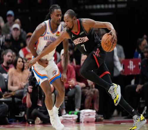 直到上一場(chǎng)打公牛,小賈終于在比賽最后時(shí)刻找到手感,算是緩過(guò)來(lái)了。本賽季第一次交手時(shí),雙方苦戰(zhàn)加時(shí),火箭1分惜敗。但是在火箭主場(chǎng)此前8次對(duì)陣?yán)做?勝1負(fù)。回顧一下比賽,開(kāi)場(chǎng)杰威跳投+霍姆格倫轟三分,阿門(mén)造殺傷后,小賈翻身跳投,霍姆格倫輕松起飛暴扣,小賈續(xù)上三分,奧克吉逼出亞歷山大一個(gè)進(jìn)攻犯規(guī)。中段雷霆連續(xù)暴扣打?;鸺?,杜蘭特終于跳投開(kāi)張,此后阿門(mén)連續(xù)扣籃追分,米切爾回應(yīng)壓哨三分,第一節(jié)火箭19-21雷霆。進(jìn)入第二節(jié),霍姆格倫三分轟炸,米切爾連續(xù)強(qiáng)攻內(nèi)線得手。