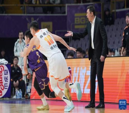 1月15日,北京控股隊主教練張慶鵬在比賽中。新華社記者 謝晗 攝
