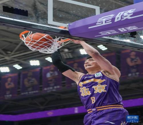 1月15日,北京控股隊球員朱松瑋在比賽中扣籃。新華社記者 謝晗 攝