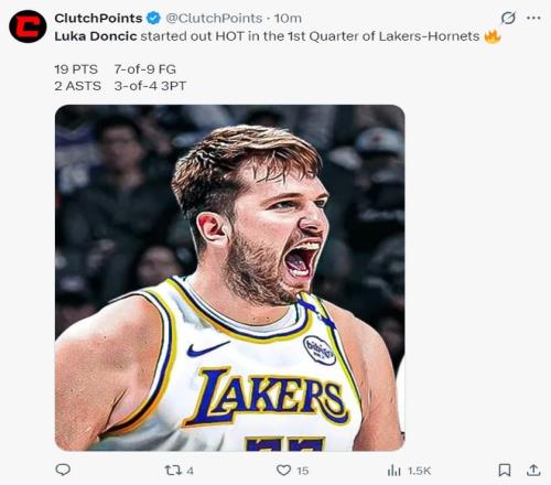 易邊再戰黃蜂連續命中三個三分球,東契奇還攤手質疑裁判,本場比賽已經多次攤手朝著裁判輸出,東契奇吃了一個T。吃T后東契奇終于進入得分模式,他連拿15分幫助湖人縮小到4分打停黃蜂。東契奇拿到34分后扶著腰直接進入更衣室了。