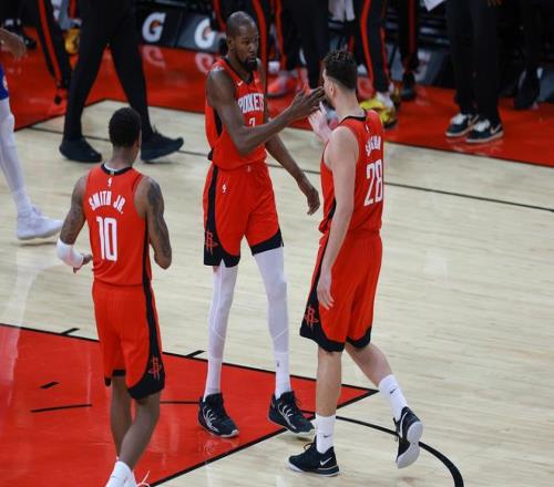 兩隊(duì)下半場開啟巔峰搏斗,火箭雙塔聯(lián)防,夾擊亞歷山大賭其他人終結(jié)效率。