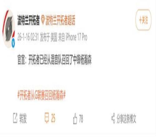 昨天在發展聯盟率領撕裂之城混音主場123-99戰勝俄克拉荷馬城藍后,砍下全隊最高22分7板3助1斷2帽的楊瀚森在對陣老鷹前被召回。