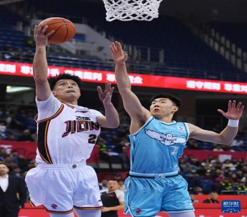 1月15日,吉林長白山恩都里隊球員欒利程(右一)在比賽中帶球突破。新華社記者 李紫恒 攝