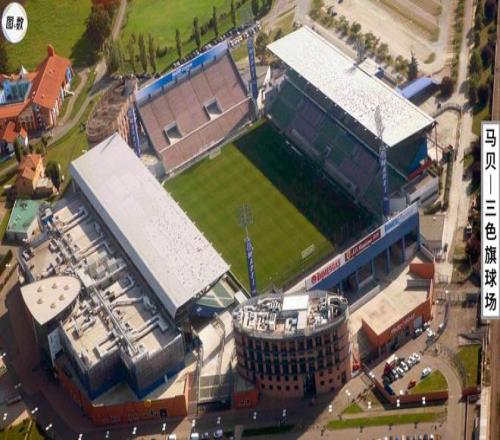 薩索洛是意甲唯一一個主場所在城市和隊名所含城市不相符的球隊,其主場并不在摩德納省的薩索洛市,而是在雷焦艾米利亞省的雷焦艾米利亞市(Reggio Emilia),即容量為2萬余人的馬貝-三色旗球場(Reggio Emilia),它由意甲的薩索洛隊和意乙的雷吉亞納隊(雷吉亞納意為“雷焦的”)共用,但產權歸薩索洛隊所有,是意大利少數幾個產權不屬于市政府或市議會的職業聯賽賽場之一(都靈安聯球場屬尤文圖斯/羅馬奧林匹克體育場屬意大利奧委會)。