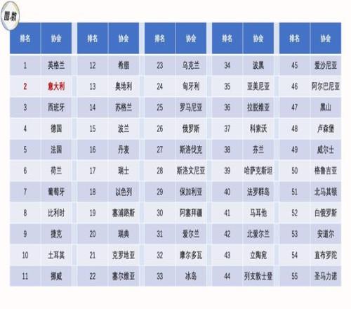 雖然意大利國家隊尚未確定是否能參加2026美加墨世界杯,但意大利整體的足球實力還是很強的,在俱樂部的歐戰方面,意大利目前是歐洲第2協會(2025年6月版歐足聯系數),僅次于英格蘭。