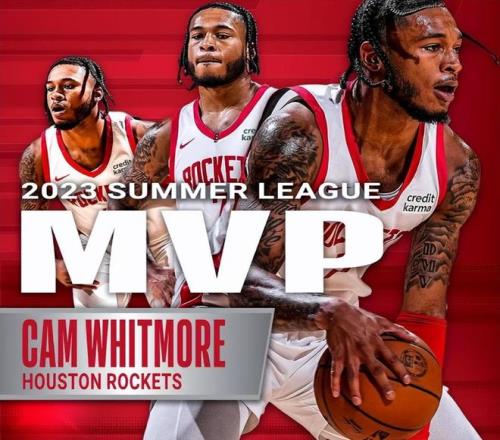 加盟火箭后,惠特莫爾在新秀賽季立即展現(xiàn)了巨大潛力。2023年夏季聯(lián)賽,他在5場比賽中場均31.5分鐘可以砍下20.4分、5.6個籃板、2.2次助攻和3次搶斷,不僅入選夏季聯(lián)賽最佳陣容第一陣容,還當選了夏季聯(lián)賽MVP。