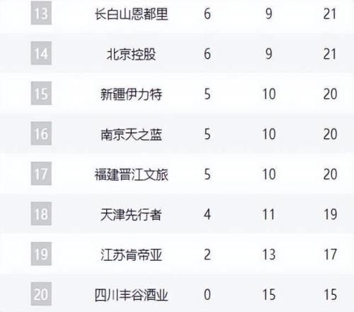 積分榜后半段,福建隊、天津隊、江蘇隊分列第17至第19名,四川隊則遭遇15連敗,全聯盟墊底。本輪比賽展現了CBA聯賽的激烈競爭和不確定性,各隊為季后賽席位展開激烈角逐,排名格局隨時可能發生變化。