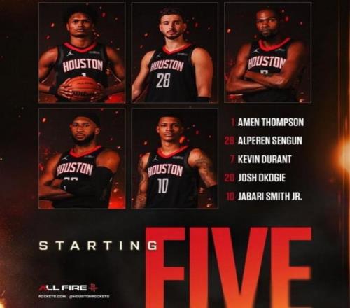 火箭隊本場的首發陣容分別是阿門·湯普森、奧科吉、杜蘭特、小史密斯和申京,和前一場沒有什么變化。但第二陣容有一些調整,5位球員出戰,分別是后衛謝潑德、戴維森,以及前鋒多利安·芬尼-史密斯、泰特和中鋒卡佩拉。兩套陣容看起來非常齊整。