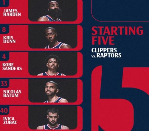 首發(fā)陣容方面,快船隊(duì)這邊,小瓊斯、波格丹、比爾繼續(xù)缺陣,保羅也還是未隨隊(duì)(待交易狀態(tài)),倫納德受傷病影響也不打,泰倫盧教練排出的最新首發(fā)五人組為:詹姆斯-哈登、克里斯-鄧恩、桑德斯、巴圖姆、祖巴茨;猛龍隊(duì)這邊, 巴雷特(腳踝)、珀?duì)柼貭枺ū巢浚⑽譅柼兀y部)缺戰(zhàn),首發(fā)陣容則為:巴恩斯、博伊爾斯、謝德、阿巴吉、英格拉姆。