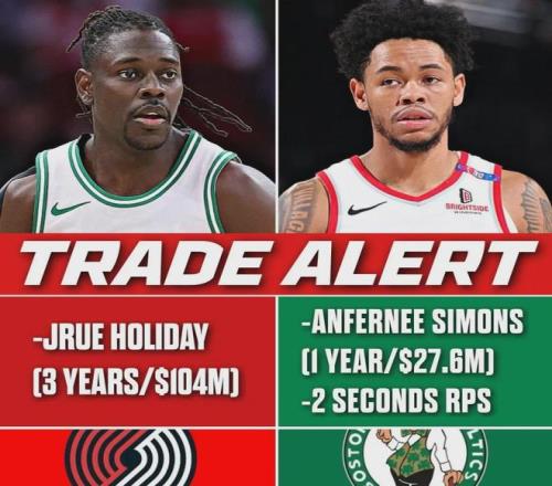 這筆交易本來是1換3,凱爾特人用霍勒迪換來西蒙斯和2個(gè)次輪簽。開拓者在體檢時(shí)發(fā)現(xiàn)霍勒迪有傷,撤回2個(gè)次輪簽,交易變成1換1。霍勒迪合同還剩3年1.04億美元,西蒙斯合同僅剩1年2760萬,凱爾特人一舉省下4000萬奢侈稅!