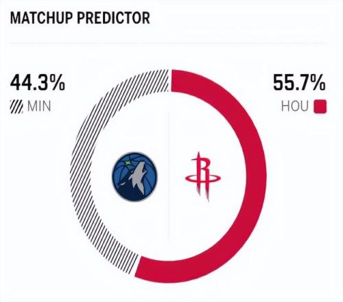 這是兩隊本賽季的首次交鋒,近5次交手中,火箭3勝2負稍占優勢。賽前,美媒ESPN對本場比賽進行了預測,火箭勝率高達55.7%,森林狼勝率只有44.3%,稍占劣勢。